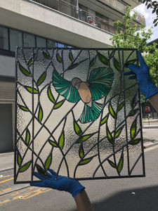 J'ai voulu développer différentes techniques de sertissage à travers ce vitrail, le sertissage au plomb et au Tiffany.